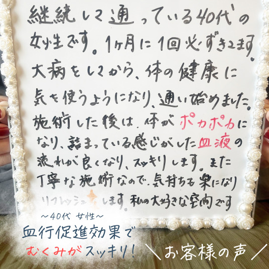 | 各コースには首のリンパマッサージ・ドライヘッドマッサージも含まれております 電話・インスタグラム・DM・公式サイトからのご予約で初回¥500円引きいたします |